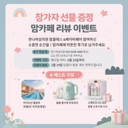 [°øÁö] Çѳª¿©¼ºÀÇ¿ø ¸¾Å¬·¡½º&º£ÀÌÀÌÆä¾î Âü¿© ÇϽŠºÐ ¸®ºäÀ̺¥Æ®(¼±¹°ÁõÁ¤)